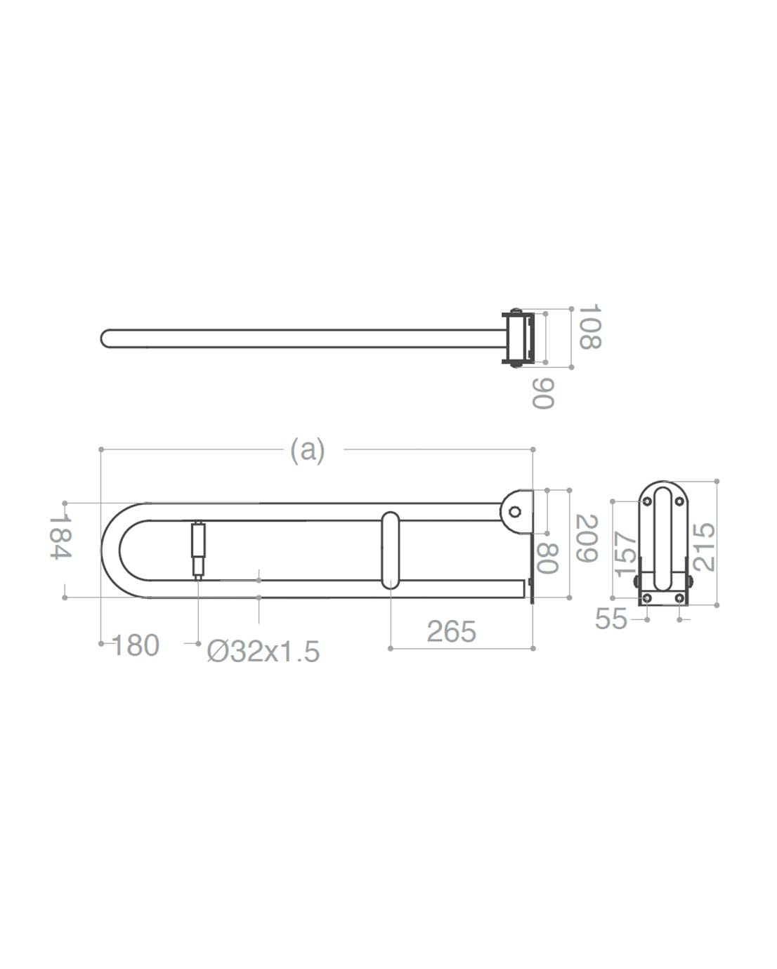 Armstöd Pito Classic med toapappershållare, vitt, längd: 60, 70 och 80 cm